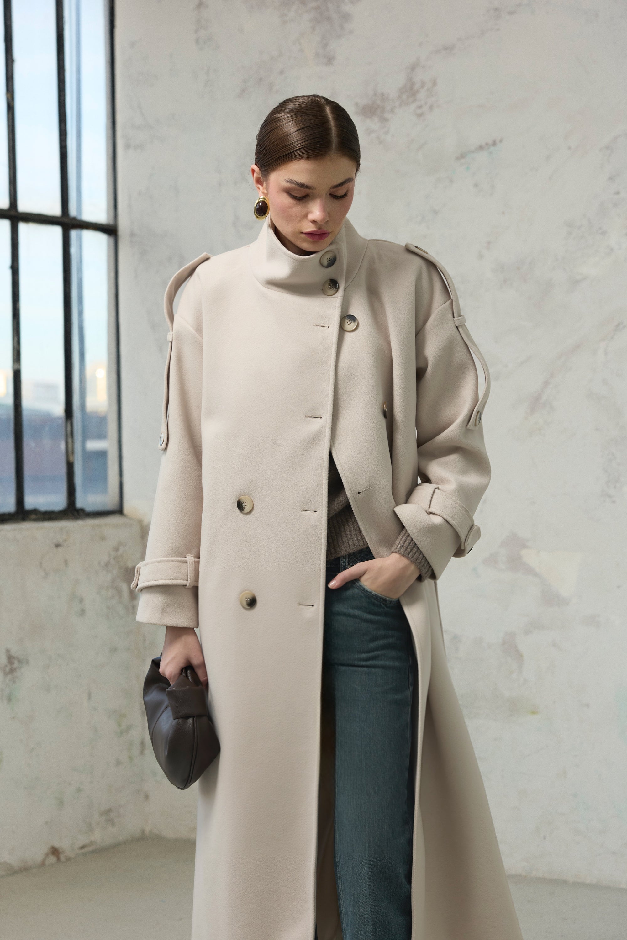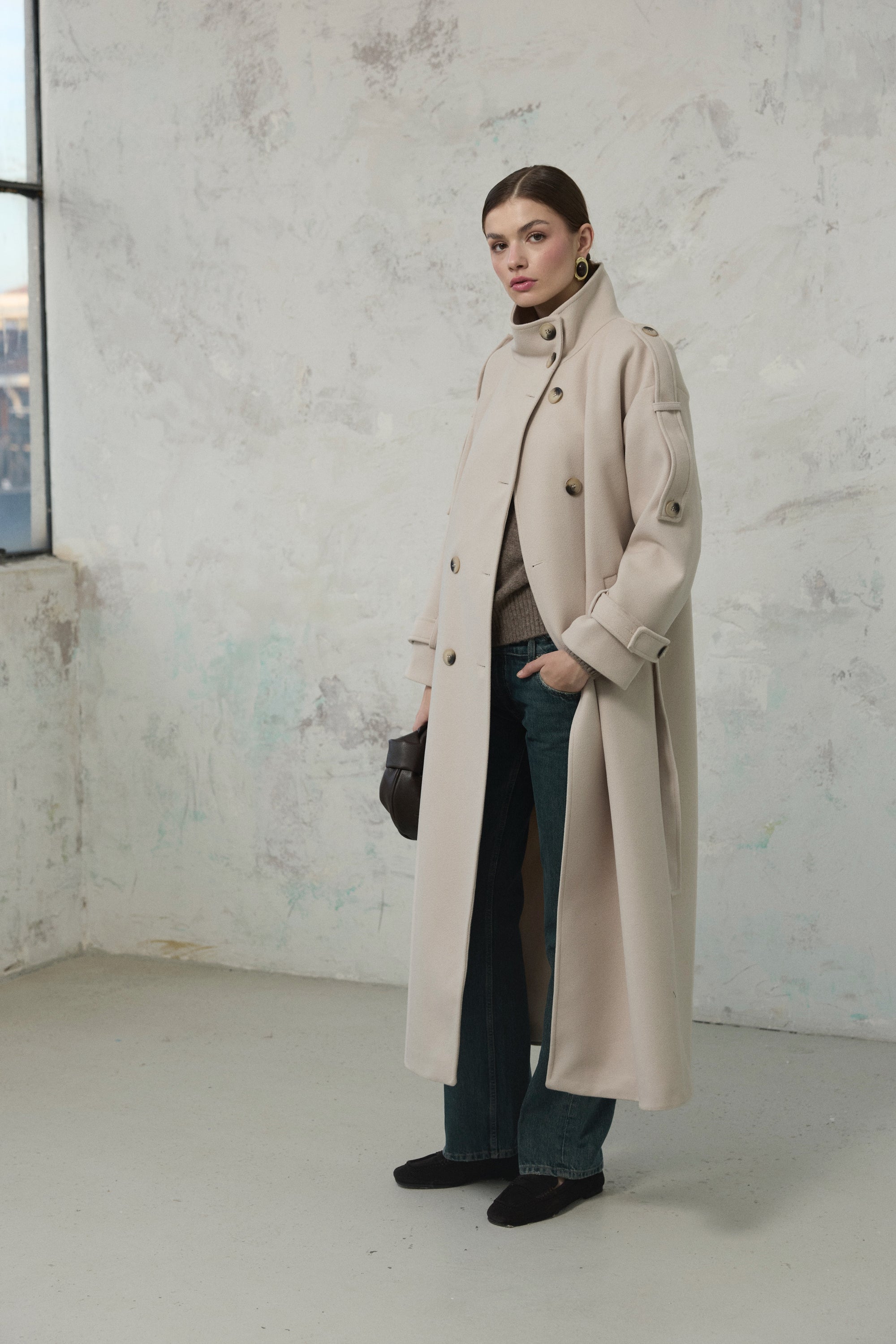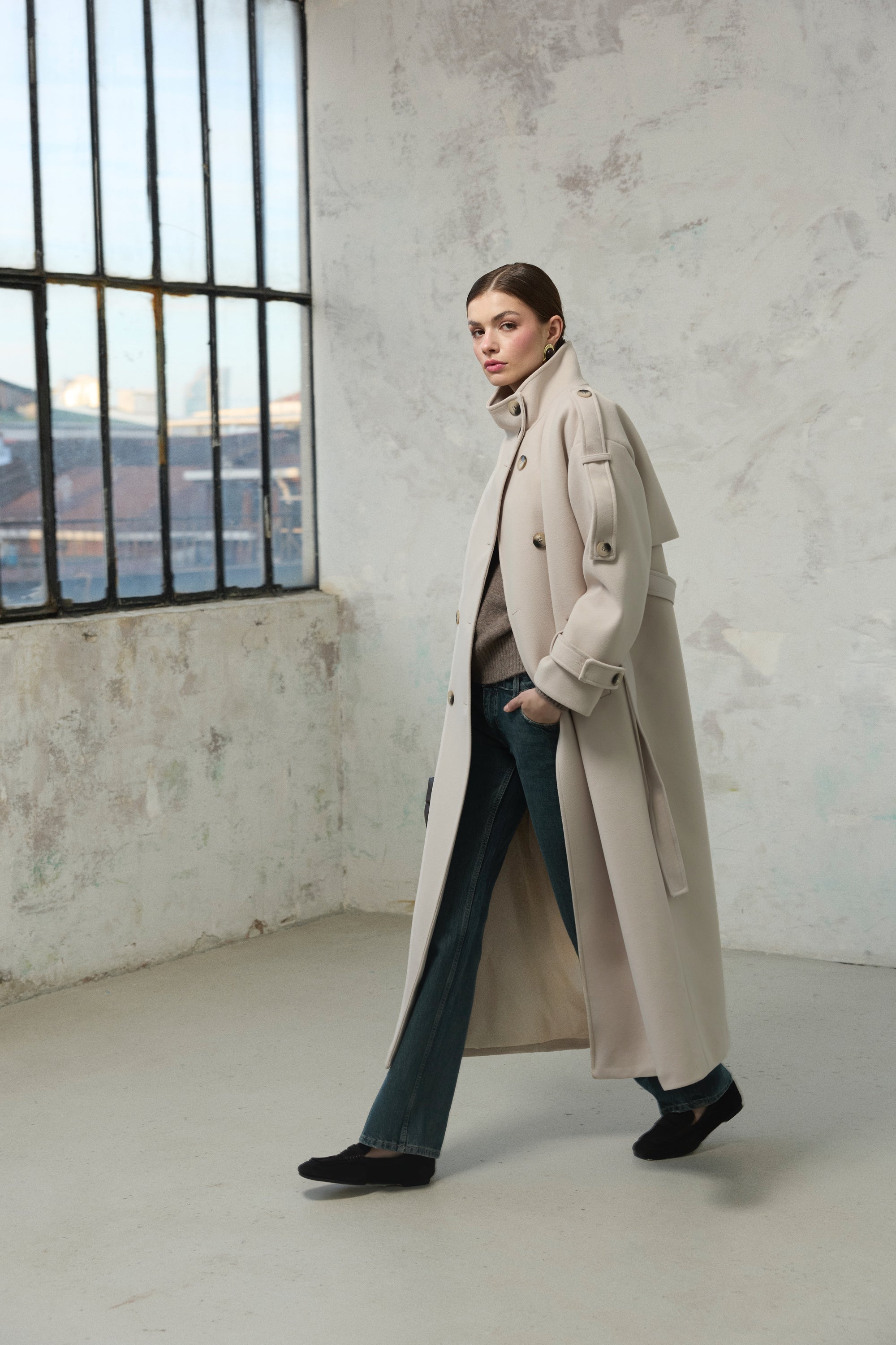 Kaşe kaban, kusursuz formu ve yumuşak dokusuyla sezonun ruhunu yansıtıyor. Sade ama dikkat çekici bir şıklık...
