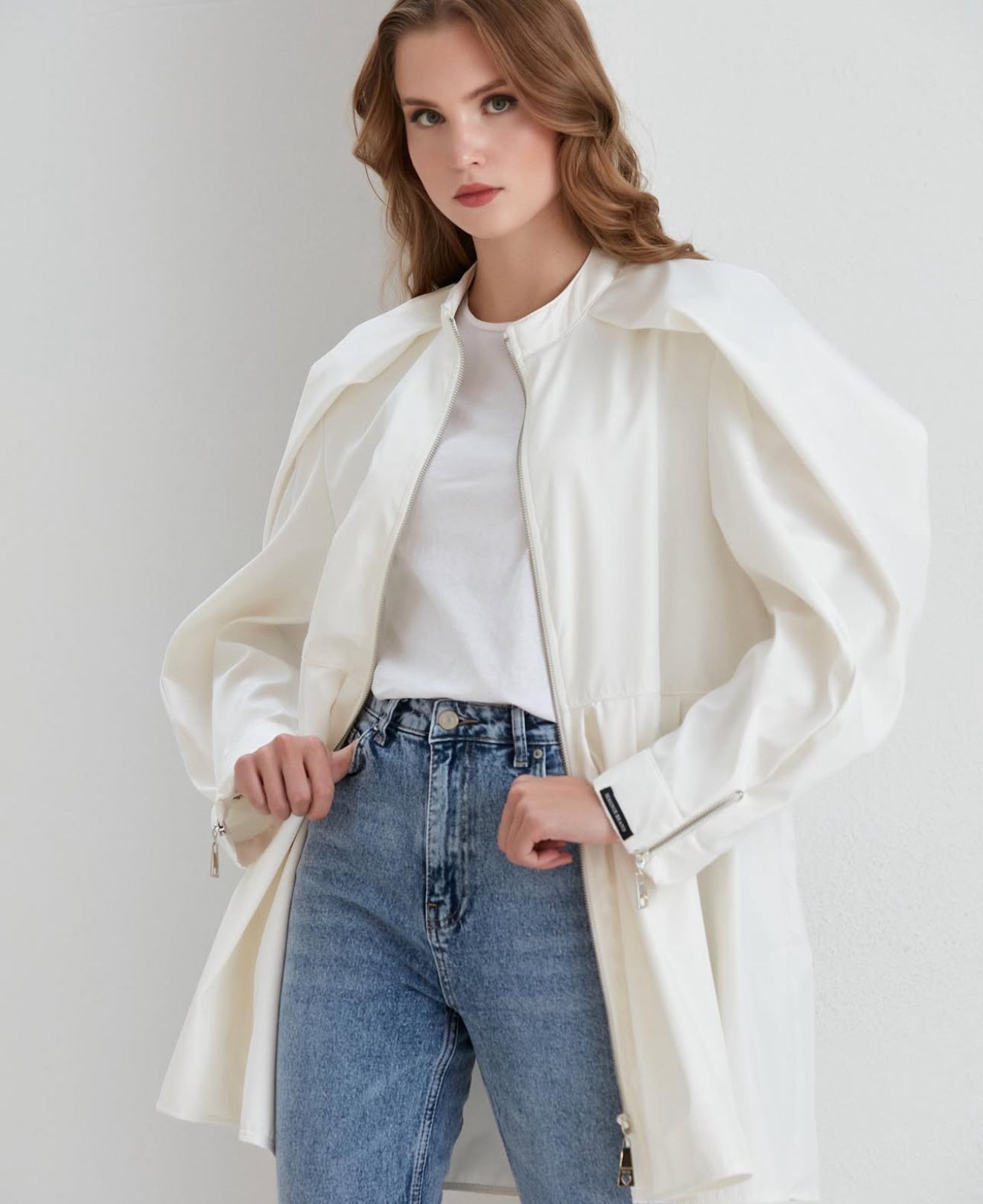 Cep Detaylı Süet Bomber Ceket - Açık Bej