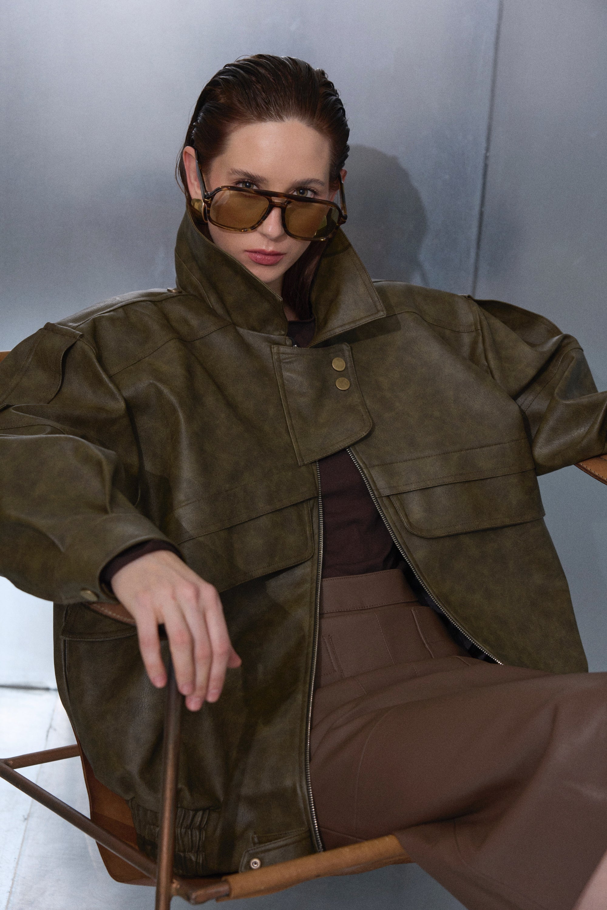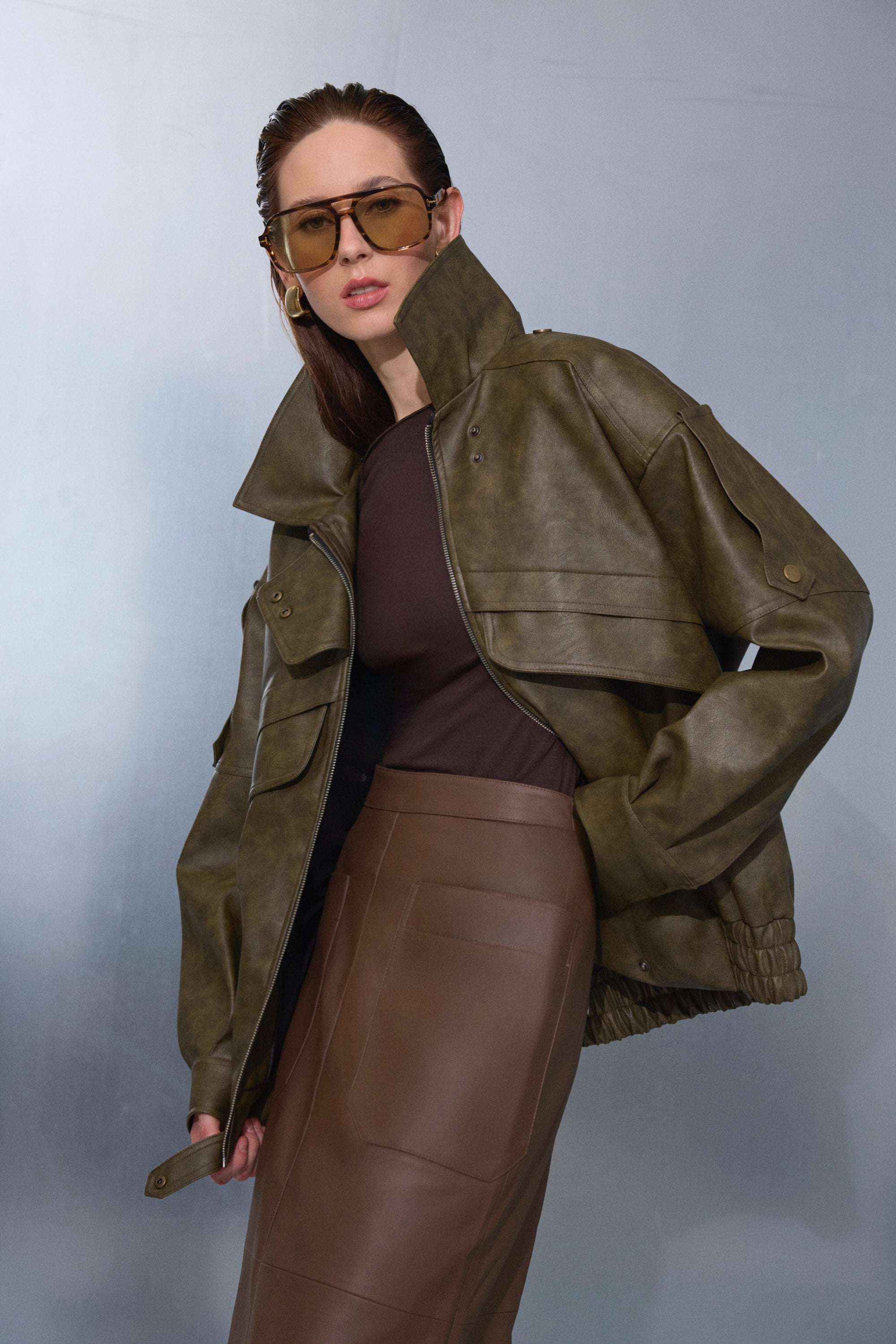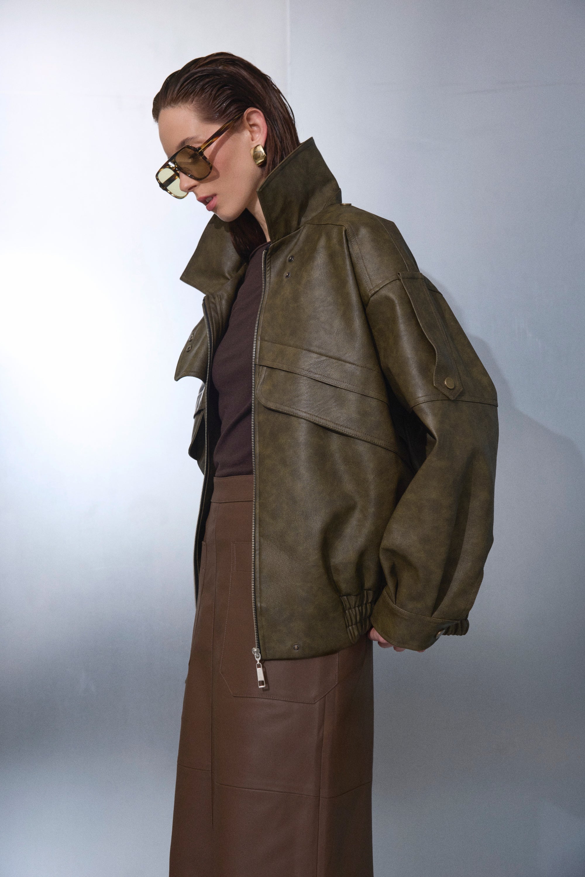 Cep Detaylı Süet Bomber Ceket - Acı Kahve